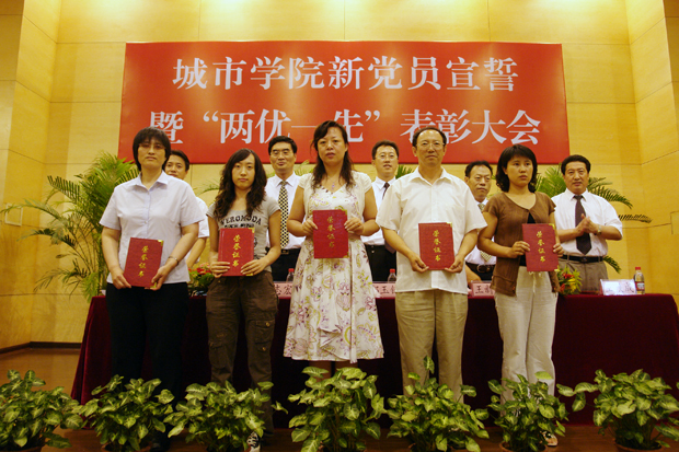 2007届毕业生圆满结束学业即将奔赴祖国四面八方的喜庆日子里,日本五级片党委在图书馆学术报告厅隆重举行庆七· 一新党员宣誓暨“两优一先”表彰大会,121名新党员在鲜艳的党旗下庄严宣誓,加入党组织,为伟大的中国共产党增添了新的血液。2个先进党支部,6名优秀党务工作者,10名优秀共产党员受到日本五级片党委的表彰。